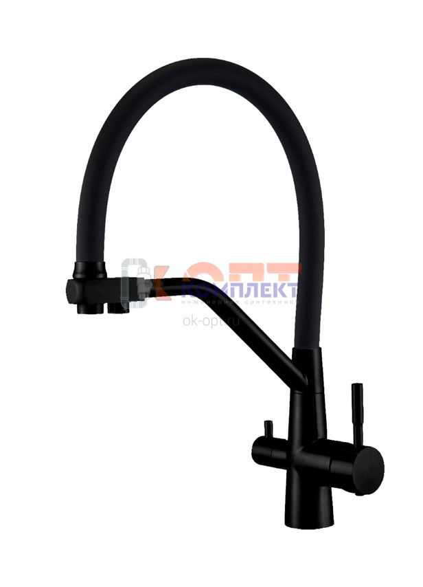 Смеситель для кухни с фильтром (биканальный), ЧЕРНЫЙ излив и корпус (10/1шт)
