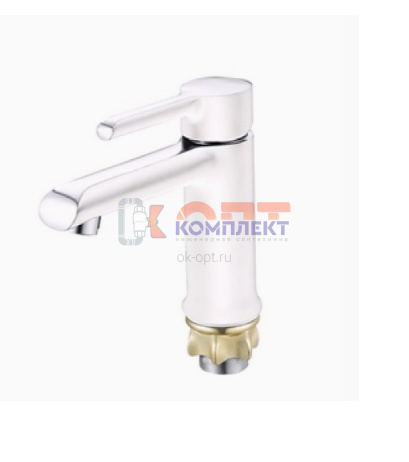 Смеситель ABS пластик для умывальника, картридж ø35, гайка, БЕЛЫЙ мат, БЕЗ подводки (1/30шт)
