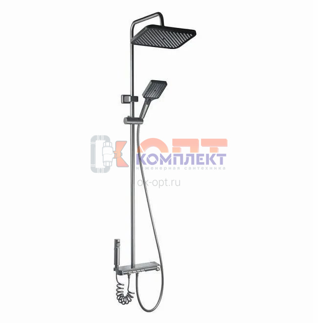 Душевая система с изливом, ø35, кнопочное переключение., латунь, ГРАФИТ темный мат (1/5шт)