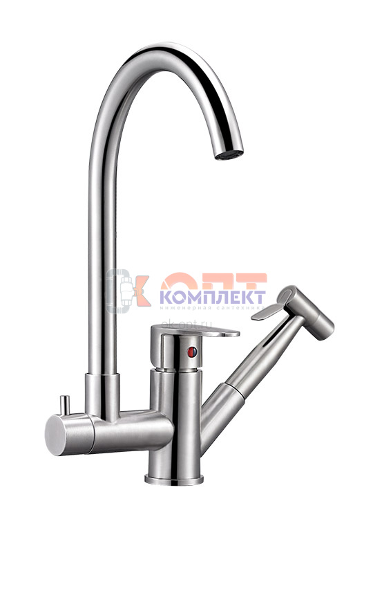 смеситель для кух. мойки с доп. вытяжным изливом, нерж. Сталь, гайка JAT18-A094