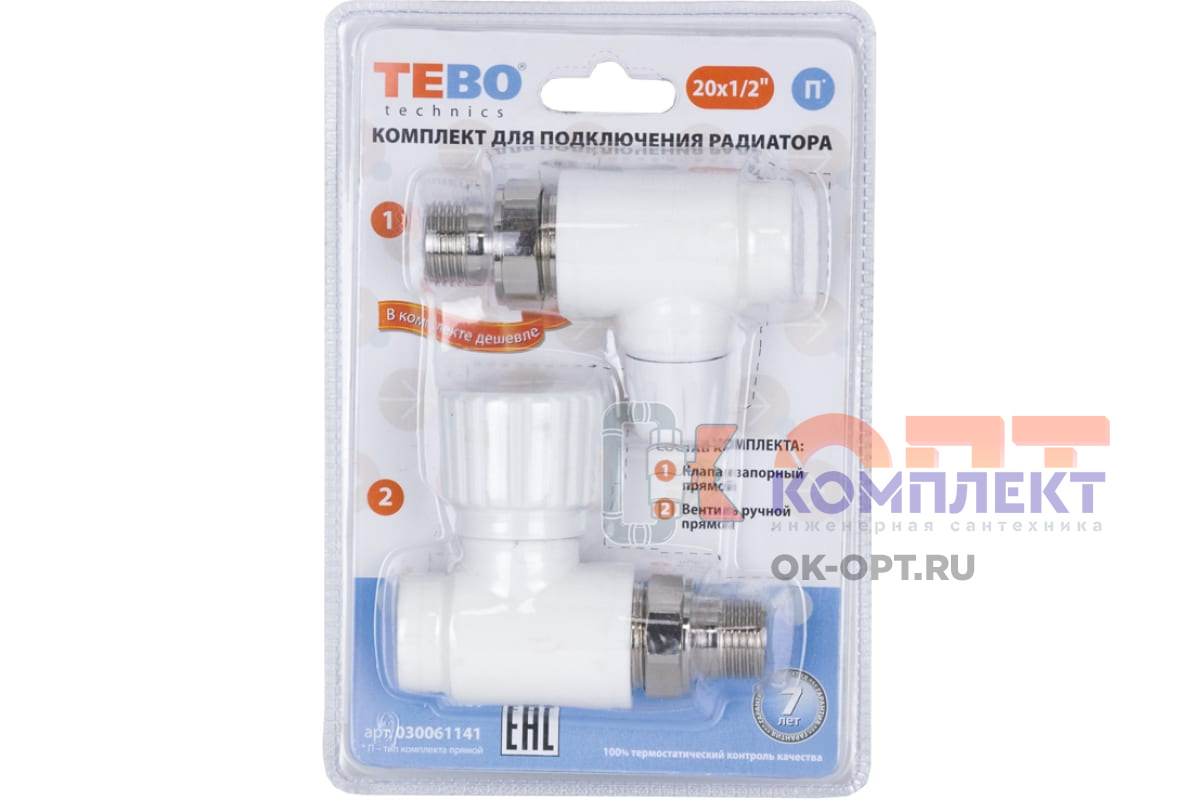 PPR TEBO Комплект №1 - ПРЯМОЙ 1/2 (Клапан терм. 20x1/2, кл.запор. 20x1/2, термоголовка) (1/17шт)
