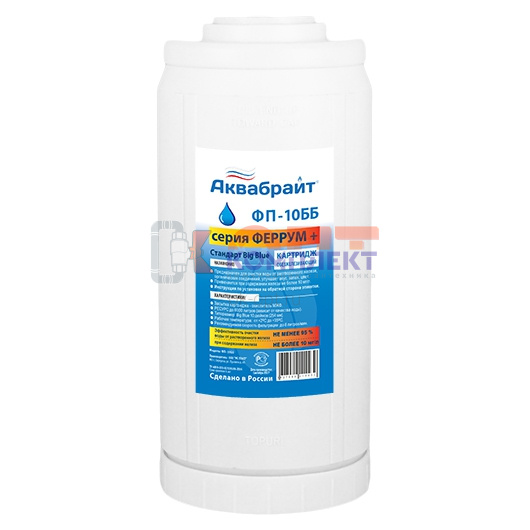 Картридж ВВ10 УДАЛЕНИЯ ЖЕЛЕЗА НИТЯНОЙ 10 мкр АКВАБРАЙТ (20шт)