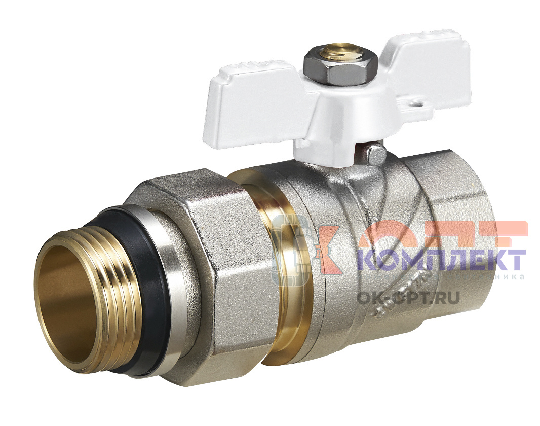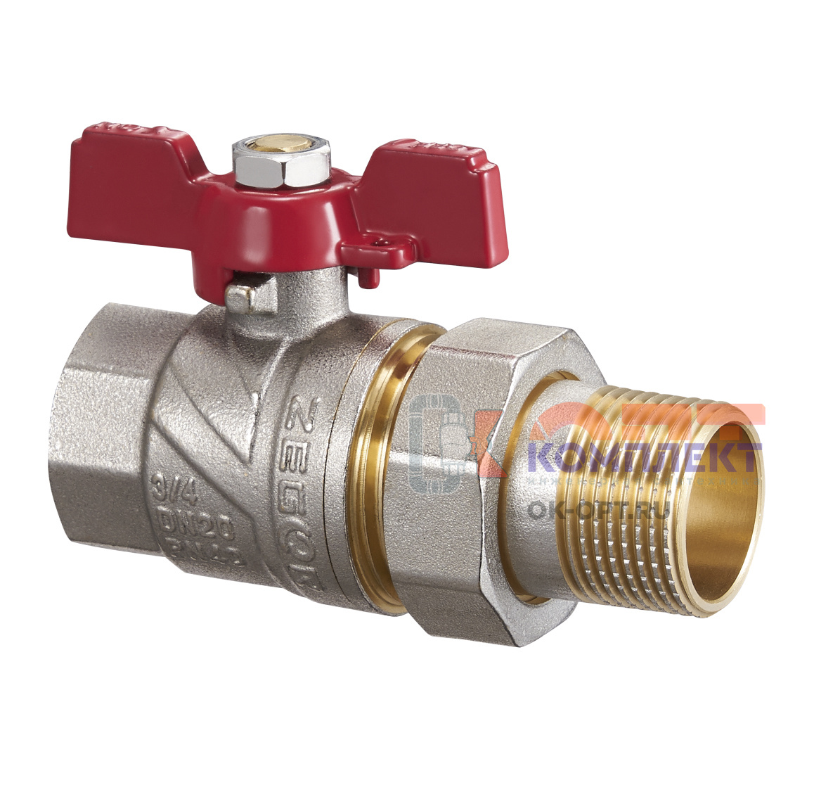 Кран шаровый Zegor прямой со сгоном с доп.уплот. Pn40 латунь ник 3/4" вн-нар белая бабочка (15/