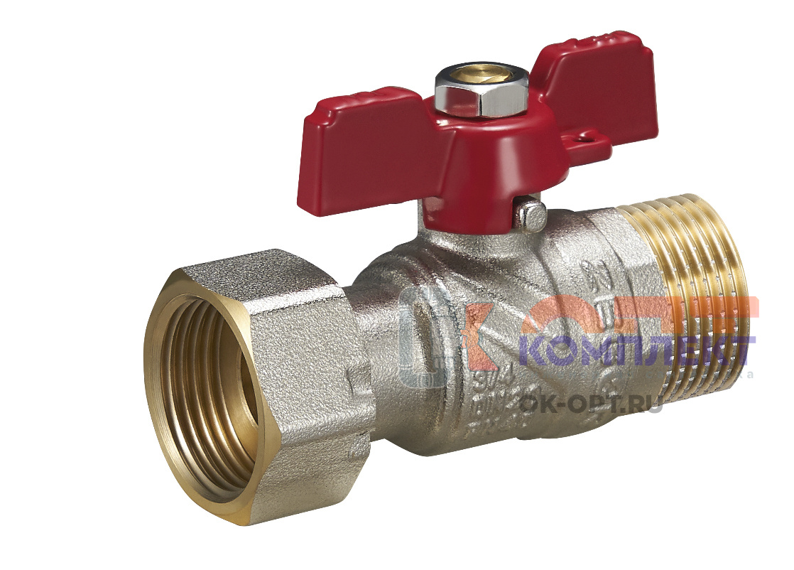 Кран шаровый прямой с накидной гайкой Pn40 латунь никель 3/4" вн-вн бабочка (20/1