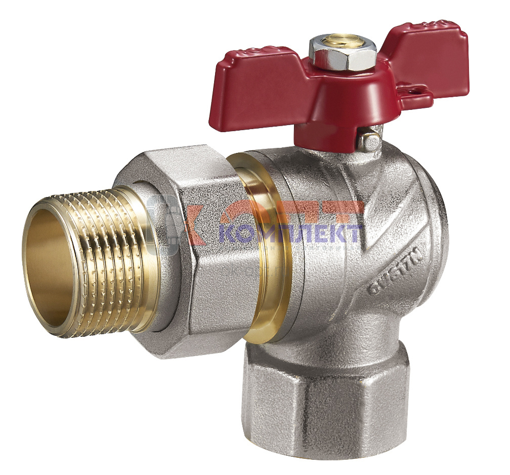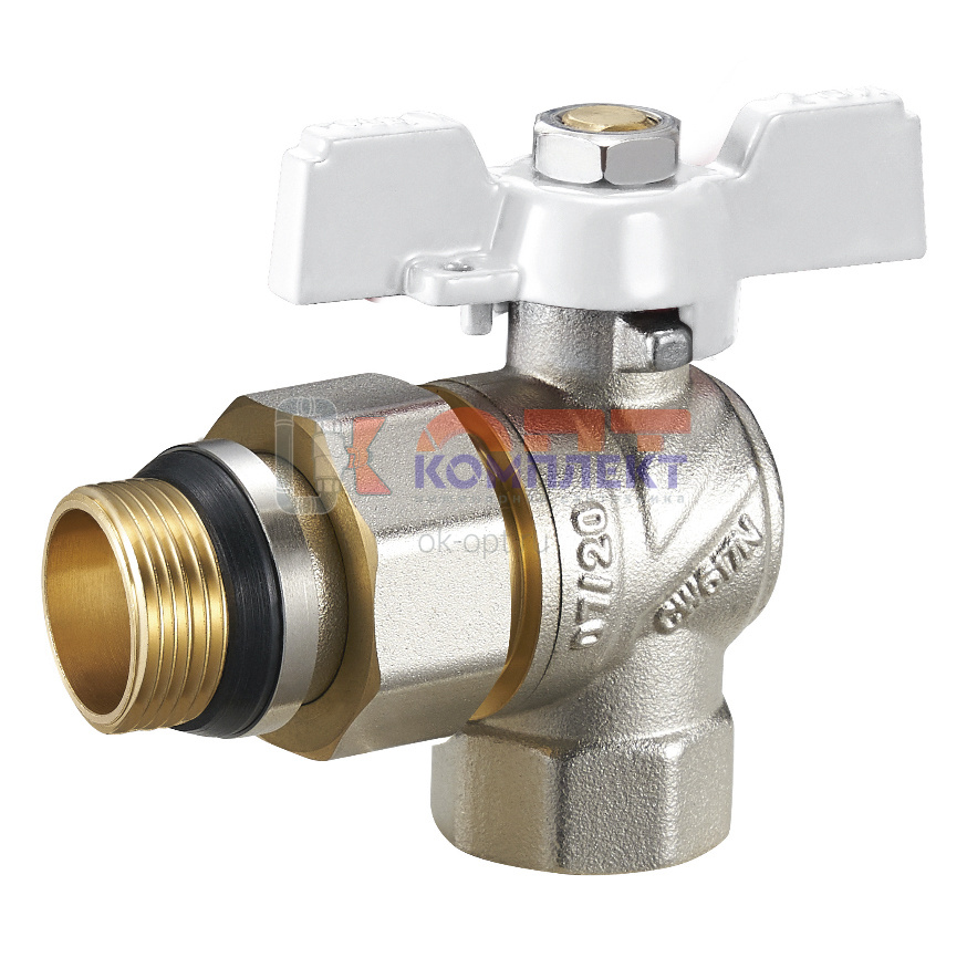 Кран шаровый Zegor угловой со сгоном с доп.уплот. Pn40 латунь ник 1/2" вн-нар белая бабочка (15