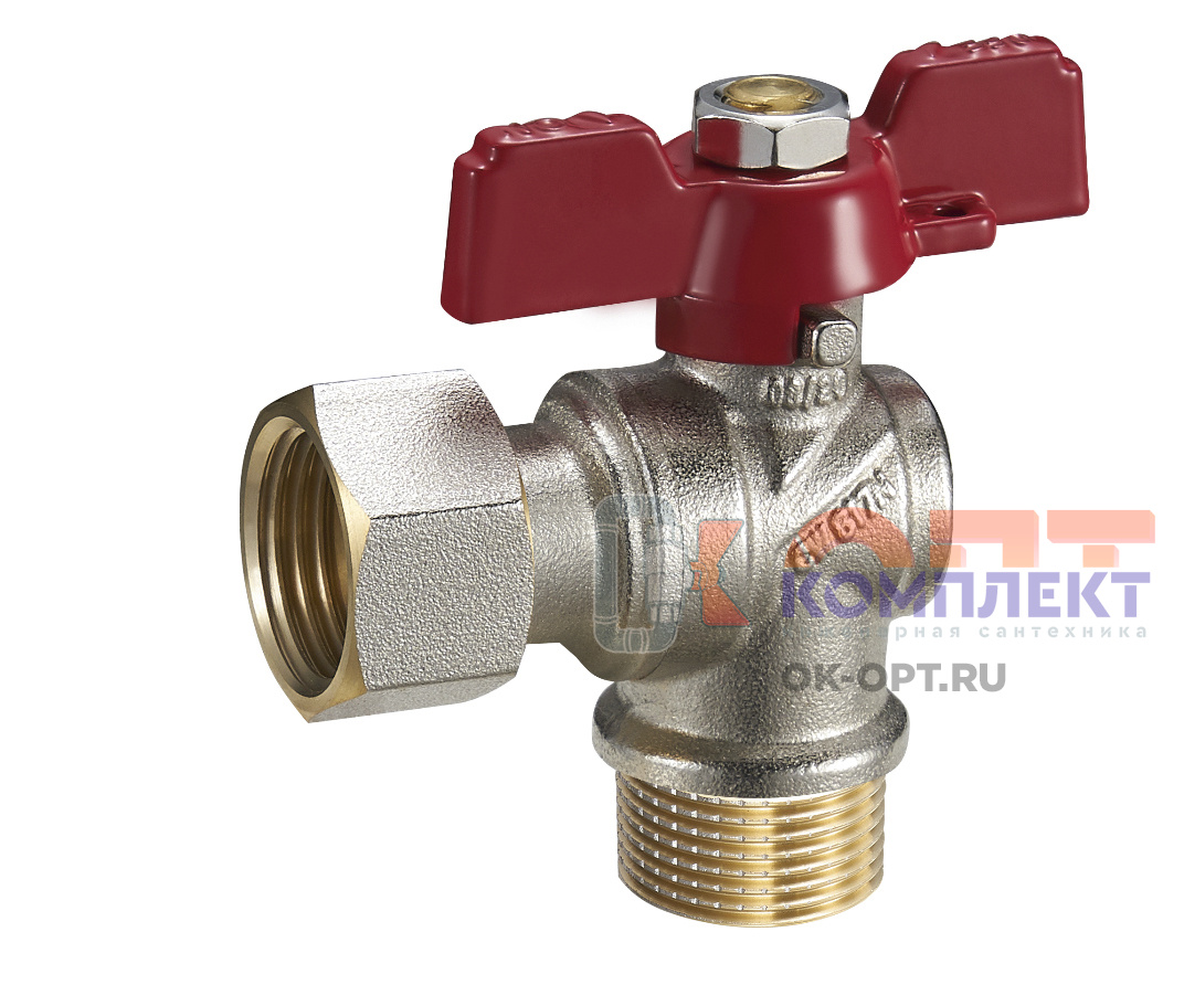 Кран шаровый Zegor угловой с накидной гайкой Pn40 латунь никель 1/2" вн-нар бабочка (25