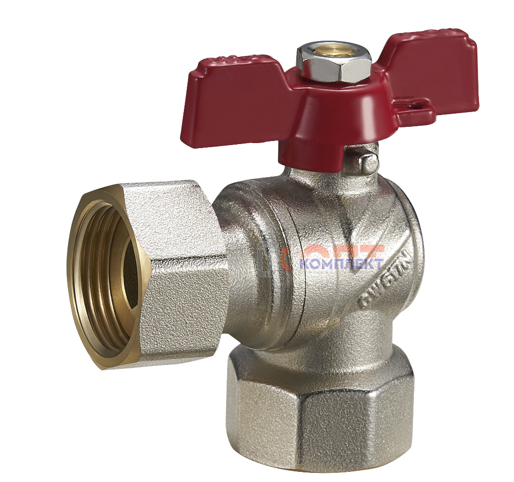Кран шаровый Zegor угловой с накидной гайкой Pn40 латунь никель 3/4" вн-вн бабочка (15/