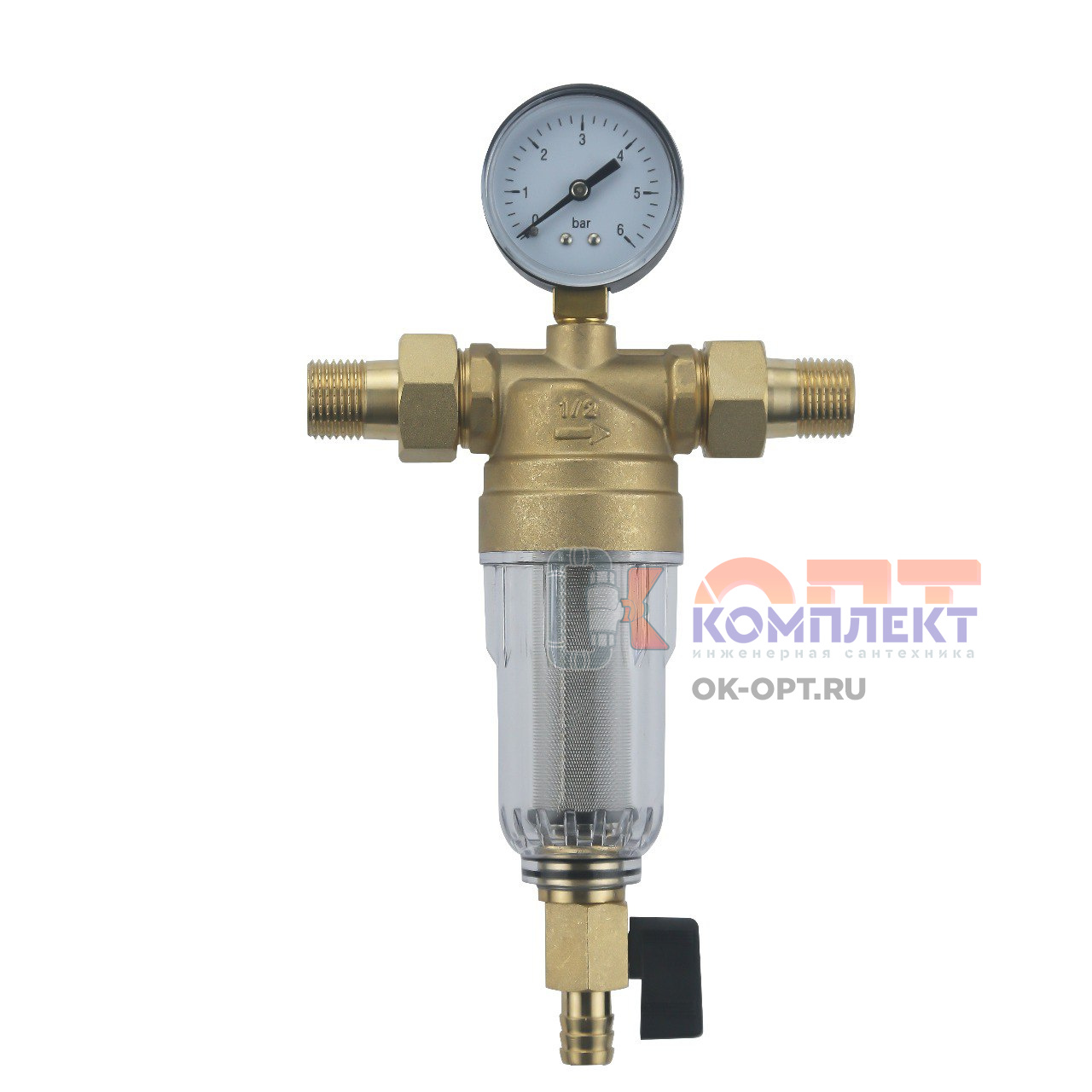 Фильтр 1/2" самопромывной для холодной воды с манометром и американками (1/28шт)