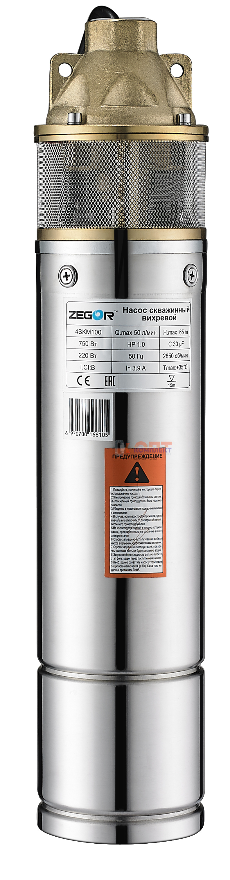 Скважинный вихревой насос 4" (100мм) 750 Вт; напор 58м; макс. расход 3,0 м3/час; кабель 10м (1/1шт