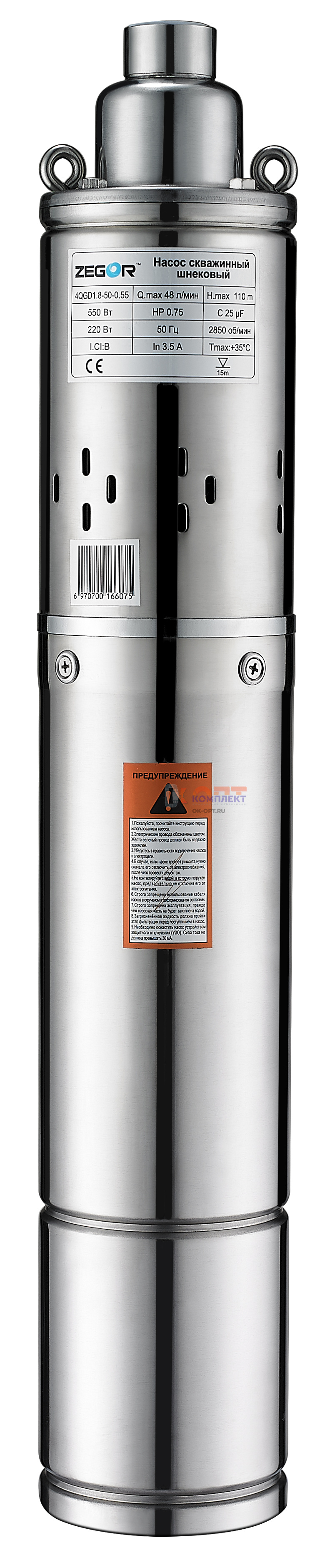 Скважинный многоступенчатый насос 4" (100мм) 550 Вт; напор 57м; макс. расход 6,5 м3/час; кабель 2
