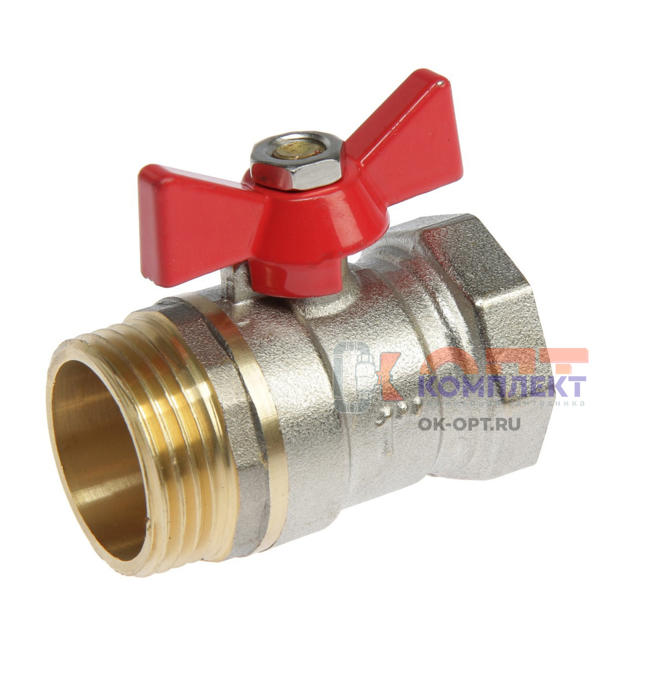 кран шаровой 1/2 вр/нар бабочка латунь никель PN40 COMPACT (10/200шт)