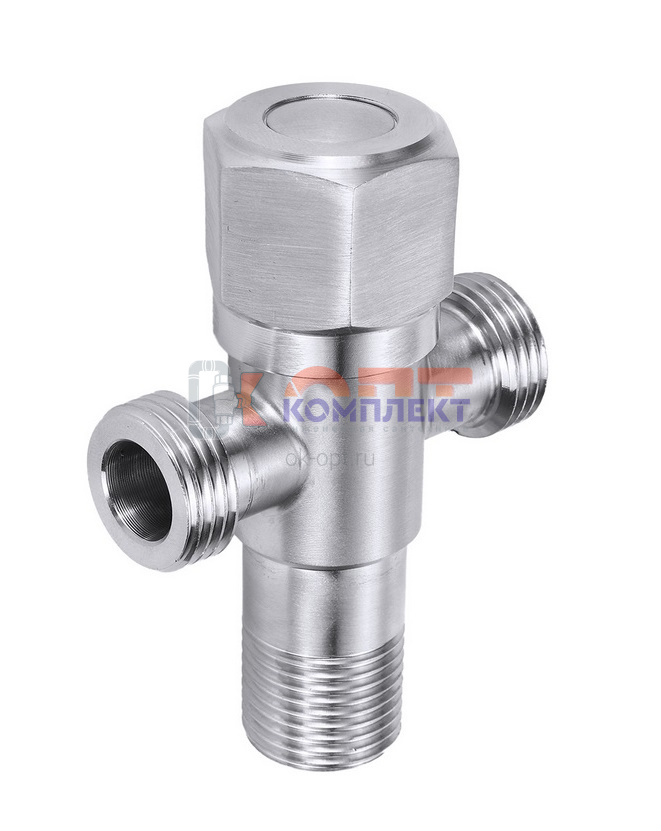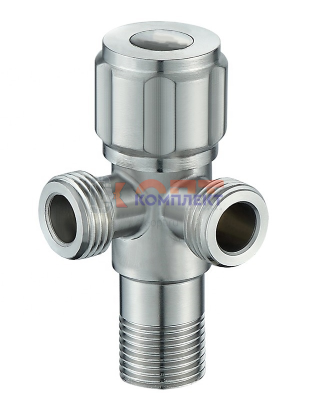 Кран угловой для подкл. с/т приборов 3 ВЫХОДА 1/2"х1/2" нерж. сталь (60шт)