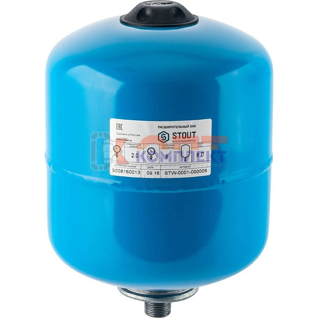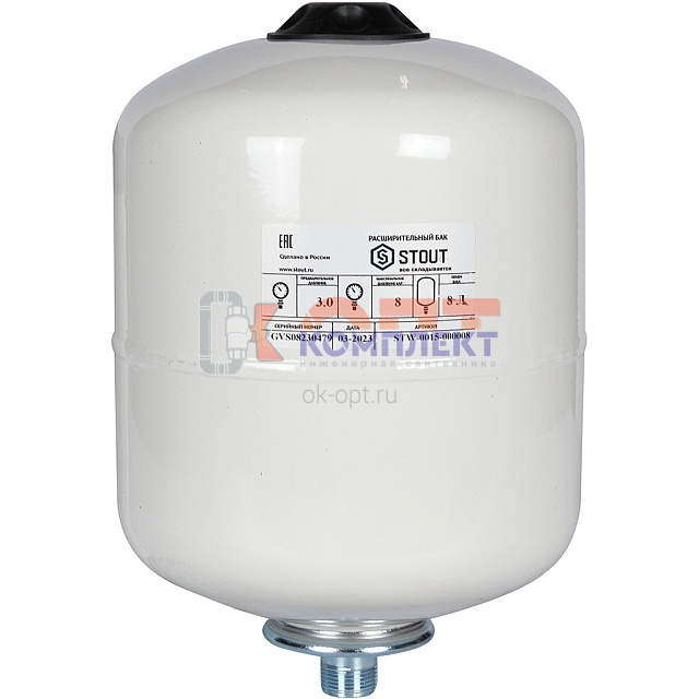 Бак расшир для ГВС 8л. белый, вертикальный, вых.3/4", UNIGB (Stout), мембрана VAREM Italy
