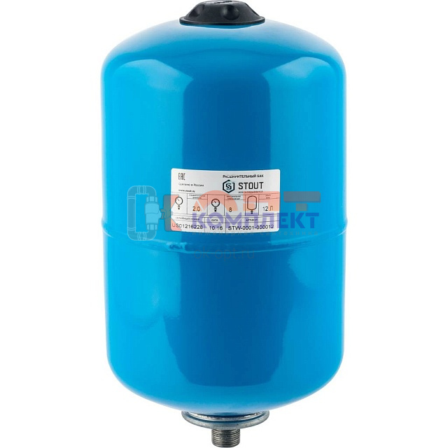 Бак расшир для водоснабжения 12л. синий, вертикальный, вых.3/4", UNIGB, мембрана VAREM Italy